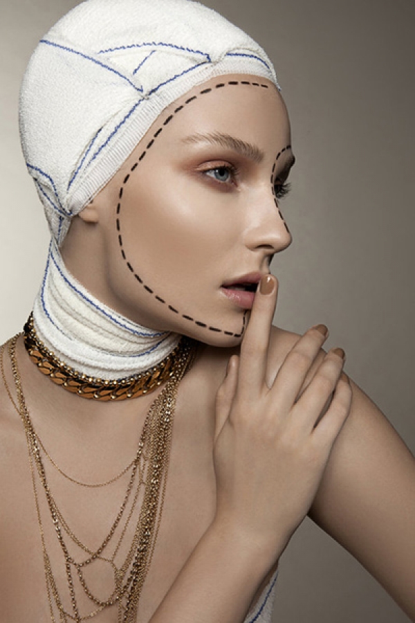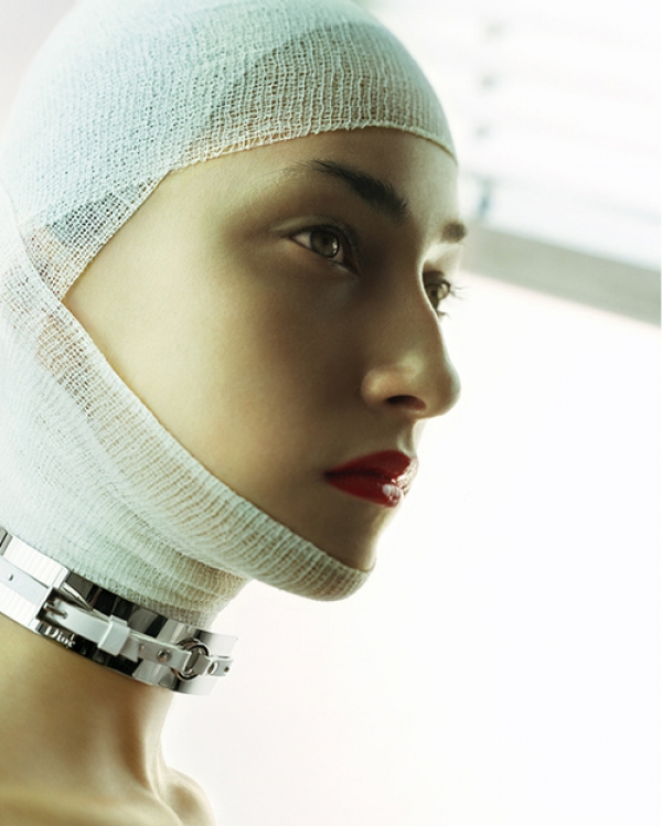 Автор серии снимков под названием «Пластическая хирургия» (Plastic Surgery) — итальянка Соня Марин. Фотограф раскрыла тему пластической хирургии по-женски, через понятия индустрии моды. Недаром у модели сквозь бинты на шее проглядывает хромированный ошейник от Dior с белой кожаной застежкой, подобранной в тон к перевязочному материалу.