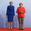 в то время как Ангела Меркель предпочитает брючные костюмы.