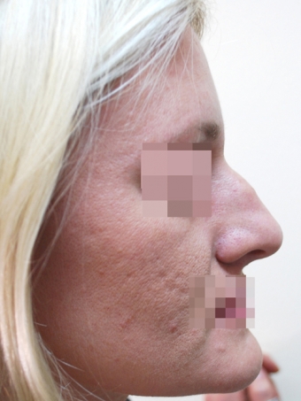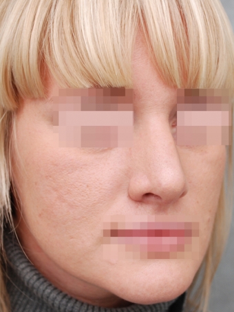 Очаровательная блондинка, жизнерадостная, энергичная решила, что ей необходимо немного поработать над спинкой носа. Конечно, после беседы мы пришли к выводу, что нужна тотальная ринопластика, хотя она изначально хотела только убрать горбинку, но мне удалось переубедить её. Поскольку кончик носа ротирован книзу, удаление горбинки могло усугубить ситуацию, визуально нос мог выглядеть ещё длиннее. Во время операции мы укоротили кончик носа, сузили его и ротировали кверху, тем самым придали нежную курносость «американского типа», а также удалили горбинку и сузили спинку носа. В результате получили красивый нос, который полностью гармонизировал целостное восприятие внешности.